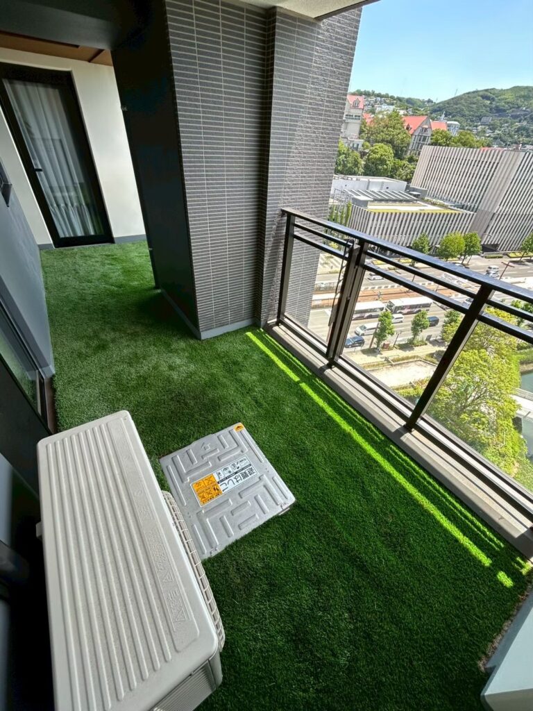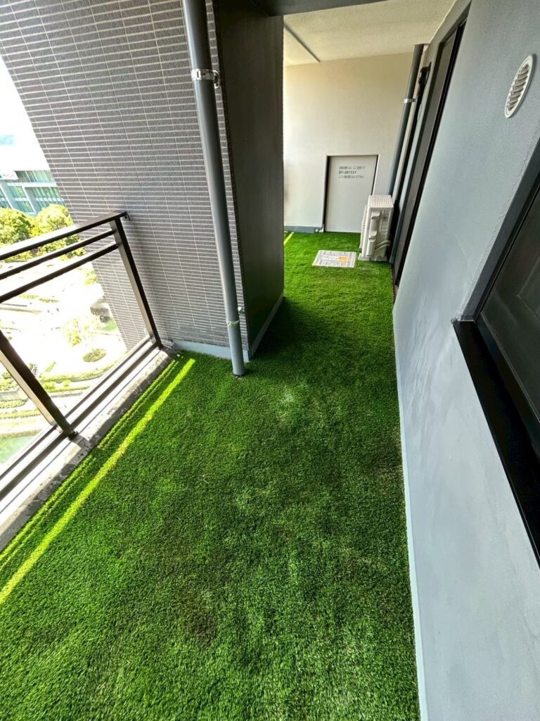 「バルコニーが殺風景で活用できていない」とのお悩みから、弊社の 冷却人工芝 を導入いただきました。