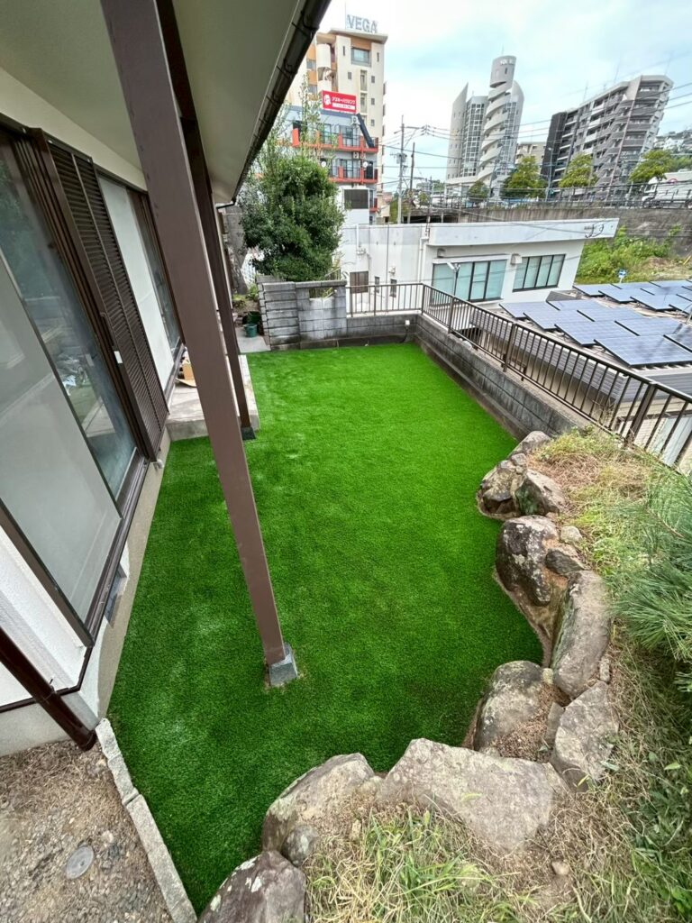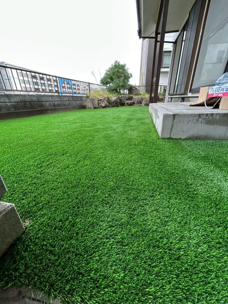 リフォーム現場のお庭に人工芝施工を行いました。
